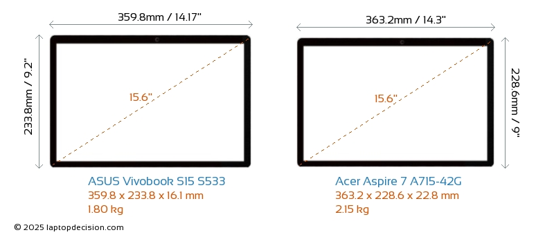 USBBoth Vivobook S15 S533 and Aspire 7 A715-42G feature 3x USB 3.2 USB-A ports.Both Vivobook S15 S533 and Aspire 7 A715-42G feature 1x USB 3.2 USB Type-C ports.