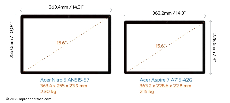 USBBoth Nitro 5 AN515-57 and Aspire 7 A715-42G feature 3x USB 3.2 USB-A ports.Both Nitro 5 AN515-57 and Aspire 7 A715-42G feature 1x USB 3.2 USB Type-C ports.