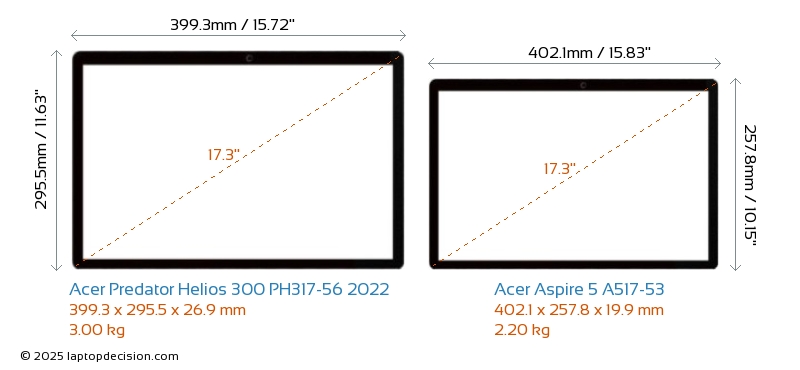 USBBoth Predator Helios 300 PH317-56 2022 and Aspire 5 A517-53 feature 3x USB 3.2 USB-A ports.Both Predator Helios 300 PH317-56 2022 and Aspire 5 A517-53 feature 1x USB 3.2 USB Type-C ports.