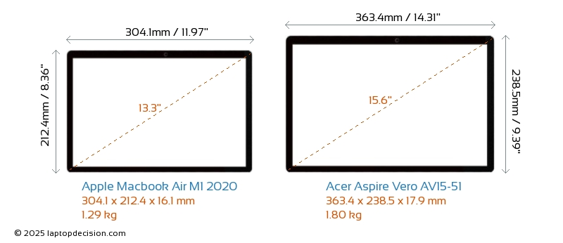 HDMIAspire Vero AV15-51 features an HDMI port (1x HDMI 2.0) for connecting to external monitors. Macbook Air M1 2020 does not have an HDMI port.