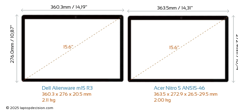 HDMIBoth Alienware m15 R3 and Nitro 5 AN515-46 feature an HDMI port. Alienware m15 R3 offers 1x HDMI 2.0, while Nitro 5 AN515-46 offers 1x HDMI 2.1.