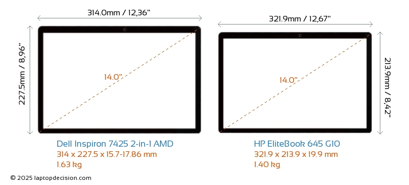 HDMIBoth Inspiron 7425 2-in-1 AMD and EliteBook 645 G10 feature an HDMI port. Inspiron 7425 2-in-1 AMD offers 1x HDMI 1.4, while EliteBook 645 G10 offers 1x HDMI 2.1.