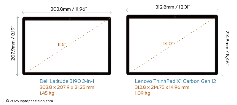 HDMIBoth Latitude 3190 2-in-1 and ThinkPad X1 Carbon Gen 12 feature an HDMI port. Latitude 3190 2-in-1 offers 1x HDMI 1.4, while ThinkPad X1 Carbon Gen 12 offers 1x HDMI 2.1.