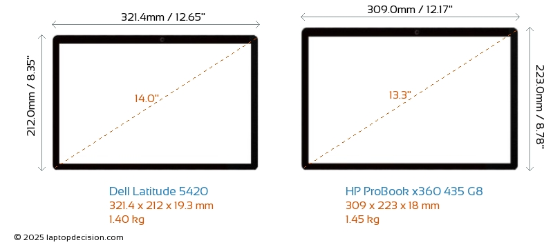 HDMIBoth Latitude 5420 and ProBook x360 435 G8 feature an HDMI port. Latitude 5420 offers 1x HDMI 2.0, while ProBook x360 435 G8 offers 1x HDMI 1.4.