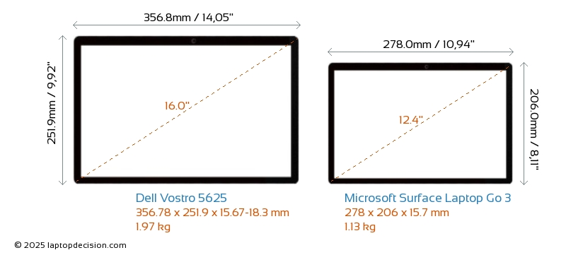 HDMIVostro 5625 features an HDMI port (1x HDMI 1.4) for connecting to external monitors. Surface Laptop Go 3 does not have an HDMI port.