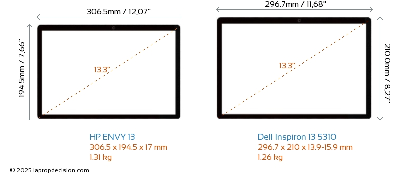 HDMIInspiron 13 5310 features an HDMI port (1x HDMI 1.4) for connecting to external monitors. ENVY 13 does not have an HDMI port.