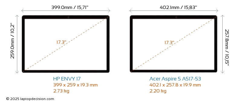 HDMIBoth ENVY 17 and Aspire 5 A517-53 feature an HDMI port (1x HDMI 2.0) for connecting to external monitors.