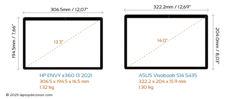 USBBoth ENVY x360 13 2021 and Vivobook S14 S435 feature 2x USB 3.2 USB-A ports.Both ENVY x360 13 2021 and Vivobook S14 S435 have USB Type-C ports. ENVY x360 13 2021 has 1x USB 4.0 USB Type-C ports, while Vivobook S14 S435 has 2x USB 3.2 USB Type-C ports.