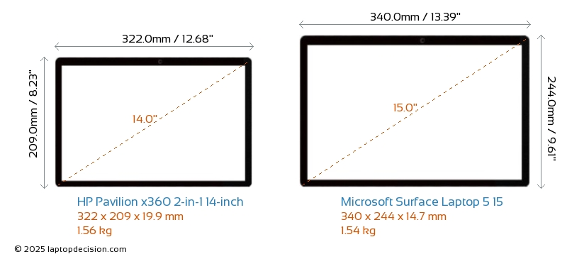 Audio JackBoth Pavilion x360 2-in-1 14-inch and Surface Laptop 5 15 are equipped with a 3.5mm Audio Jack, providing seamless connection to headphones and speakers.