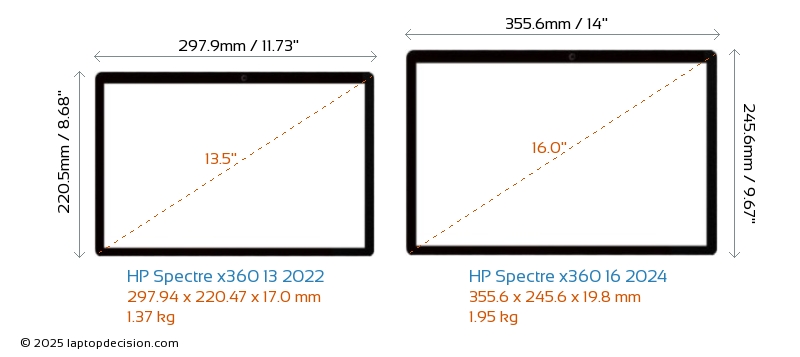 HDMI Spectre x360 16 2024 features an HDMI port (1x HDMI 2.1) for connecting to external monitors. Spectre x360 13 2022 does not have an HDMI port.