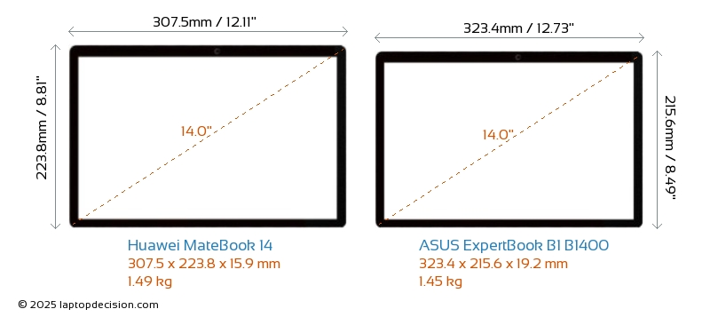 HDMIBoth MateBook 14 and ExpertBook B1 B1400 feature an HDMI port. MateBook 14 offers 1x HDMI 1.4, while ExpertBook B1 B1400 offers 1x HDMI 2.0.