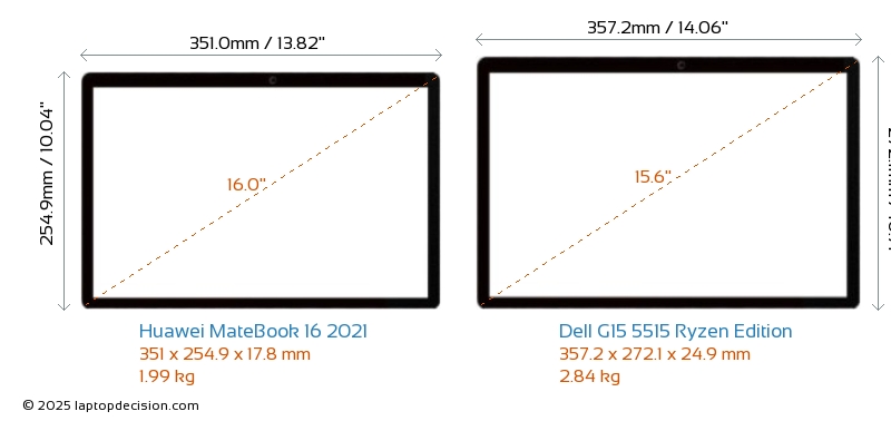 HDMIBoth MateBook 16 2021 and G15 5515 Ryzen Edition feature an HDMI port. MateBook 16 2021 offers 1x HDMI 2.0, while G15 5515 Ryzen Edition offers 1x HDMI 2.1.