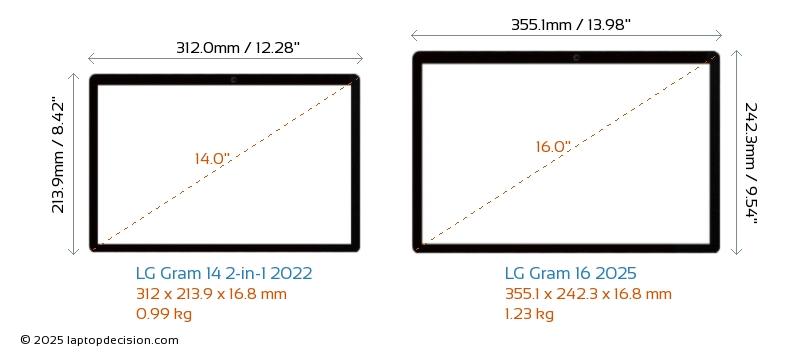 USBBoth Gram 14 2-in-1 2022 and Gram 16 2025 feature 2x USB 3.2 USB-A ports.Both Gram 14 2-in-1 2022 and Gram 16 2025 feature 2x USB 4.0 USB Type-C ports.
