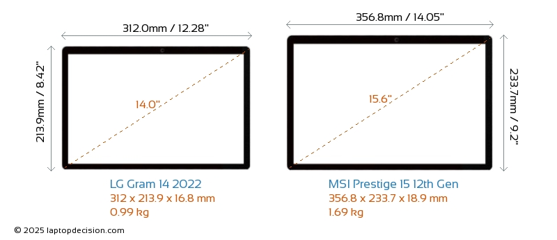 HDMIBoth Gram 14 2022 and Prestige 15 12th Gen feature an HDMI port. Gram 14 2022 offers 1x HDMI 2.0, while Prestige 15 12th Gen offers 1x HDMI 2.1.