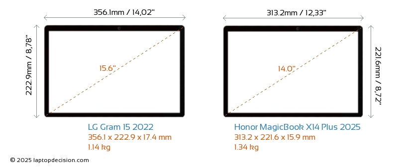 Audio JackBoth Gram 15 2022 and MagicBook X14 Plus 2025 are equipped with a 3.5mm Audio Jack, providing seamless connection to headphones and speakers.