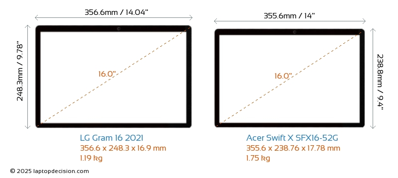 SD Card ReaderGram 16 2021 is equipped with an SD Card Reader for easy access to memory cards. Swift X SFX16-52G does not have an SD Card Reader.