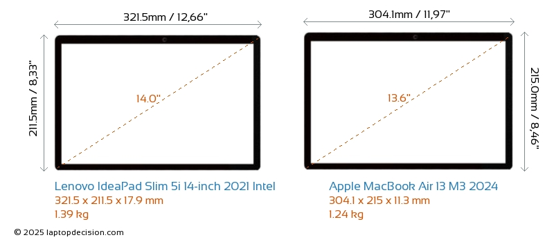 HDMIIdeaPad Slim 5i 14-inch 2021 Intel features an HDMI port (1x HDMI 1.4) for connecting to external monitors. MacBook Air 13 M3 2024 does not have an HDMI port.