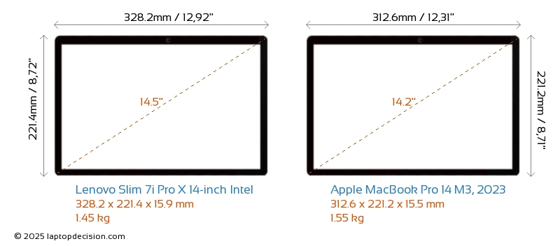 HDMIBoth Slim 7i Pro X 14-inch Intel and MacBook Pro 14 M3, 2023 feature an HDMI port. Slim 7i Pro X 14-inch Intel offers 1x HDMI 2.0, while MacBook Pro 14 M3, 2023 offers 1x HDMI 2.1.