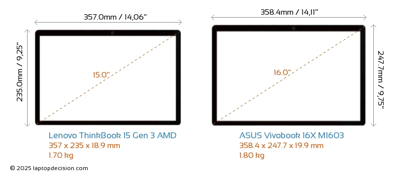 USBBoth ThinkBook 15 Gen 3 AMD and Vivobook 16X M1603 have USB-A ports. ThinkBook 15 Gen 3 AMD has 2x USB 3.2 USB-A ports, while Vivobook 16X M1603 has 3x USB 3.2 USB-A ports.Both ThinkBook 15 Gen 3 AMD and Vivobook 16X M1603 have USB Type-C ports. ThinkBook 15 Gen 3 AMD has 2x USB 3.2 USB Type-C ports, while Vivobook 16X M1603 has 1x USB 3.2 USB Type-C ports.