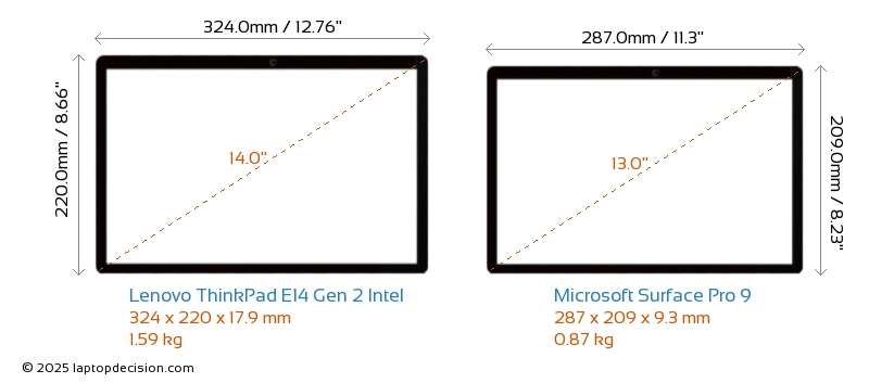 HDMIThinkPad E14 Gen 2 Intel features an HDMI port (1x HDMI 1.4) for connecting to external monitors. Surface Pro 9 does not have an HDMI port.