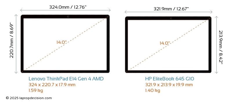 HDMIBoth ThinkPad E14 Gen 4 AMD and EliteBook 645 G10 feature an HDMI port. ThinkPad E14 Gen 4 AMD offers 1x HDMI 1.4, while EliteBook 645 G10 offers 1x HDMI 2.1.