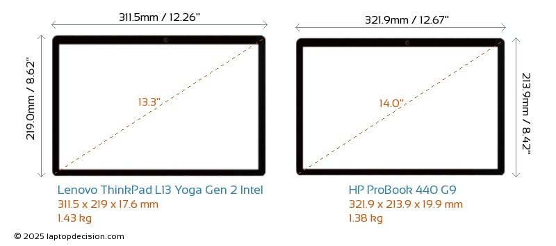 HDMIBoth ThinkPad L13 Yoga Gen 2 Intel and ProBook 440 G9 feature an HDMI port. ThinkPad L13 Yoga Gen 2 Intel offers 1x HDMI 2.0, while ProBook 440 G9 offers 1x HDMI 2.1.