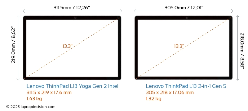 HDMIBoth ThinkPad L13 Yoga Gen 2 Intel and ThinkPad L13 2-in-1 Gen 5 feature an HDMI port. ThinkPad L13 Yoga Gen 2 Intel offers 1x HDMI 2.0, while ThinkPad L13 2-in-1 Gen 5 offers 1x HDMI 2.1.