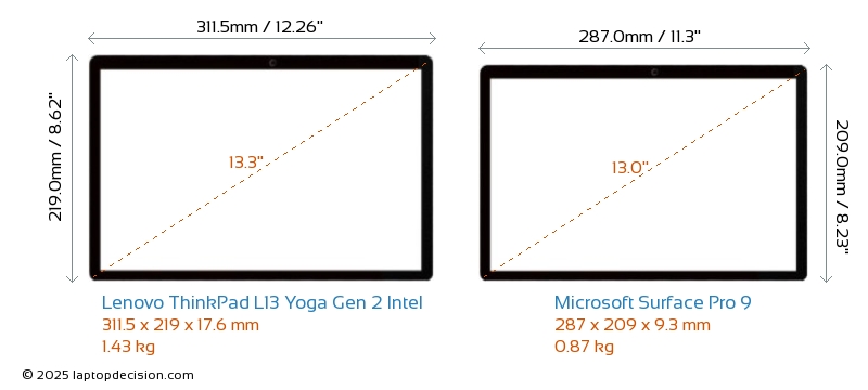 Audio JackThinkPad L13 Yoga Gen 2 Intel is equipped with a 3.5mm Audio Jack, allowing seamless connection to headphones and speakers. Surface Pro 9 does not have a 3.5mm Audio Jack.