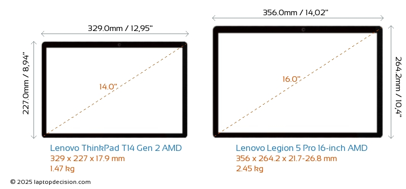 HDMIBoth ThinkPad T14 Gen 2 AMD and Legion 5 Pro 16-inch AMD feature an HDMI port. ThinkPad T14 Gen 2 AMD offers 1x HDMI 2.0, while Legion 5 Pro 16-inch AMD offers 1x HDMI 2.1.