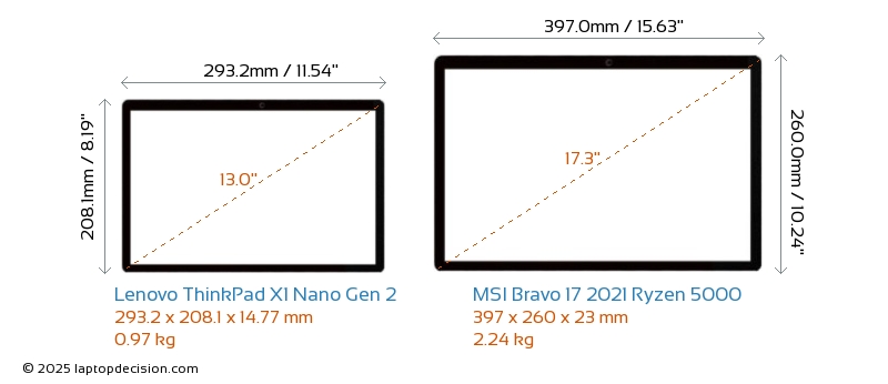 USB Bravo 17 2021 Ryzen 5000 is equipped with 3x USB 3.2 USB-A ports. ThinkPad X1 Nano Gen 2 does not have USB-A ports.Both ThinkPad X1 Nano Gen 2 and Bravo 17 2021 Ryzen 5000 have USB Type-C ports. ThinkPad X1 Nano Gen 2 has 2x USB 4.0 USB Type-C ports, while Bravo 17 2021 Ryzen 5000 has 2x USB 3.2 USB Type-C ports.
