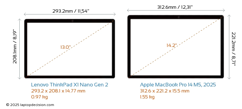 Audio JackBoth ThinkPad X1 Nano Gen 2 and MacBook Pro 14 M5, 2025 are equipped with a 3.5mm Audio Jack, providing seamless connection to headphones and speakers.