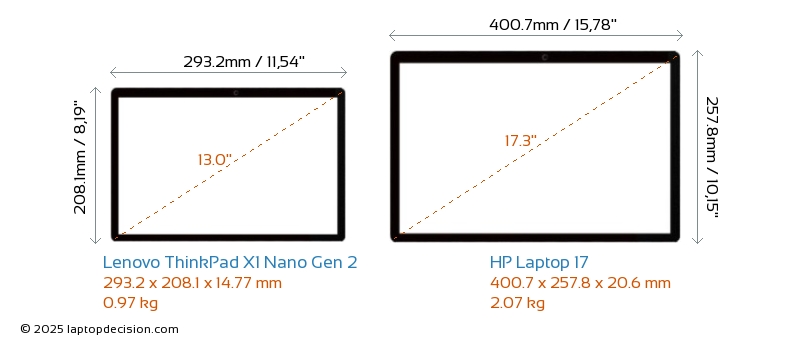 ThunderboltThinkPad X1 Nano Gen 2 is equipped with Thunderbolt 4 port. Laptop 17 does not have Thunderbolt port.
