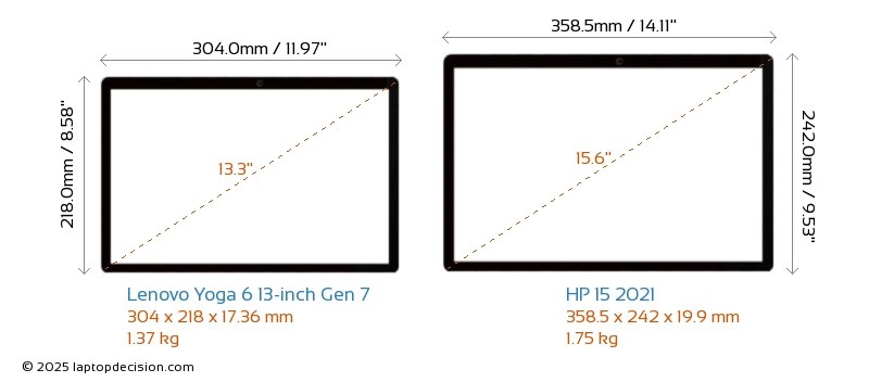 USBBoth Yoga 6 13-inch Gen 7 and 15 2021 feature 2x USB 3.2 USB-A ports.Both Yoga 6 13-inch Gen 7 and 15 2021 have USB Type-C ports. Yoga 6 13-inch Gen 7 has 2x USB 3.2 USB Type-C ports, while 15 2021 has 1x USB 3.2 USB Type-C ports.