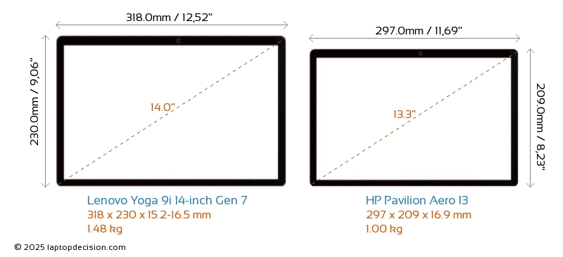 Audio JackBoth Yoga 9i 14-inch Gen 7 and Pavilion Aero 13 are equipped with a 3.5mm Audio Jack, providing seamless connection to headphones and speakers.