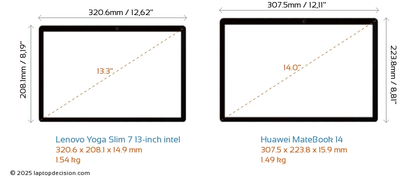 HDMIBoth Yoga Slim 7 13-inch intel and MateBook 14 feature an HDMI port. Yoga Slim 7 13-inch intel offers 1x HDMI 2.0, while MateBook 14 offers 1x HDMI 1.4.