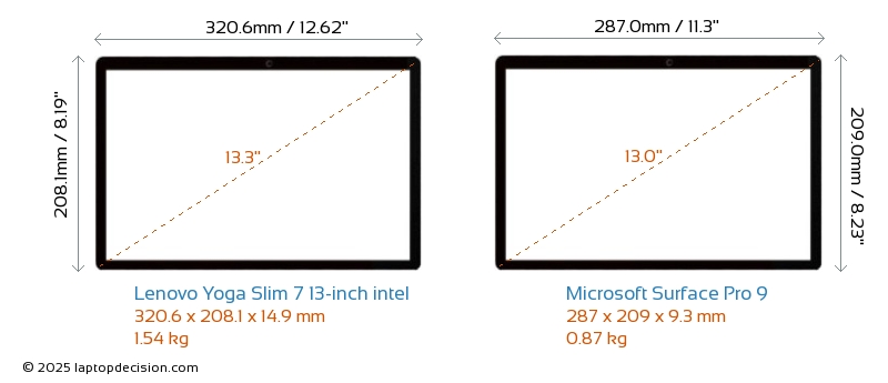 Audio JackYoga Slim 7 13-inch intel is equipped with a 3.5mm Audio Jack, allowing seamless connection to headphones and speakers. Surface Pro 9 does not have a 3.5mm Audio Jack.
