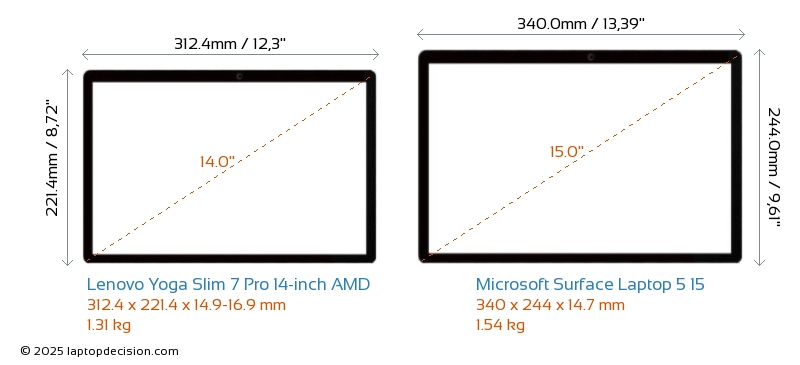 USBBoth Yoga Slim 7 Pro 14-inch AMD and Surface Laptop 5 15 have USB-A ports. Yoga Slim 7 Pro 14-inch AMD has 1x USB 3.2 USB-A ports, while Surface Laptop 5 15 has 1x USB 3.1 USB-A ports.Both Yoga Slim 7 Pro 14-inch AMD and Surface Laptop 5 15 have USB Type-C ports. Yoga Slim 7 Pro 14-inch AMD has 2x USB 3.2 USB Type-C ports, while Surface Laptop 5 15 has 1x USB 4.0 USB Type-C ports.