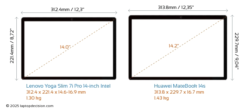 ThunderboltBoth Yoga Slim 7i Pro 14-inch Intel and MateBook 14s are equipped with Thunderbolt 4 ports.