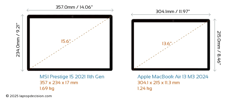 Audio JackBoth Prestige 15 2021 11th Gen and MacBook Air 13 M3 2024 are equipped with a 3.5mm Audio Jack, providing seamless connection to headphones and speakers.