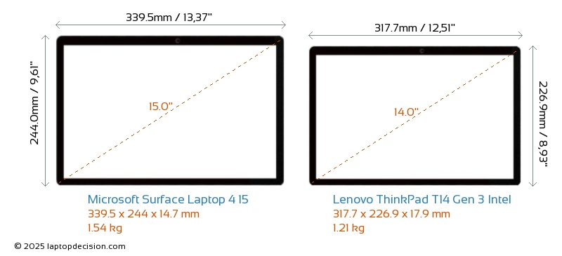 USBBoth Surface Laptop 4 15 and ThinkPad T14 Gen 3 Intel have USB-A ports. Surface Laptop 4 15 has 1x USB 3.2 USB-A ports, while ThinkPad T14 Gen 3 Intel has 2x USB 3.2 USB-A ports.Both Surface Laptop 4 15 and ThinkPad T14 Gen 3 Intel have USB Type-C ports. Surface Laptop 4 15 has 1x USB 3.2 USB Type-C ports, while ThinkPad T14 Gen 3 Intel has 2x USB 4.0 USB Type-C ports.