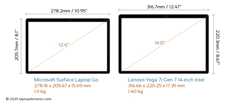 USBBoth Surface Laptop Go and Yoga 7i Gen 7 14-inch Intel feature 1x USB 3.2 USB-A ports.Both Surface Laptop Go and Yoga 7i Gen 7 14-inch Intel have USB Type-C ports. Surface Laptop Go has 1x USB 3.2 USB Type-C ports, while Yoga 7i Gen 7 14-inch Intel has 2x USB 3.2 USB Type-C ports.