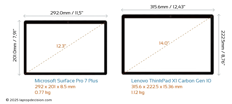 Audio JackBoth Surface Pro 7 Plus and ThinkPad X1 Carbon Gen 10 are equipped with a 3.5mm Audio Jack, providing seamless connection to headphones and speakers.