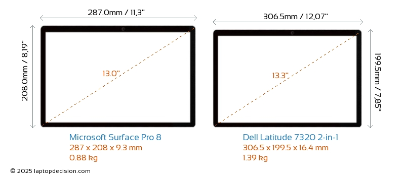 HDMILatitude 7320 2-in-1 features an HDMI port (1x HDMI 2.0) for connecting to external monitors. Surface Pro 8 does not have an HDMI port.