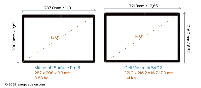 HDMIVostro 14 5402 features an HDMI port (1x HDMI 1.4) for connecting to external monitors. Surface Pro 8 does not have an HDMI port.
