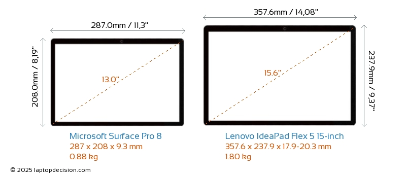 HDMIIdeaPad Flex 5 15-inch features an HDMI port (1x HDMI 1.4) for connecting to external monitors. Surface Pro 8 does not have an HDMI port.