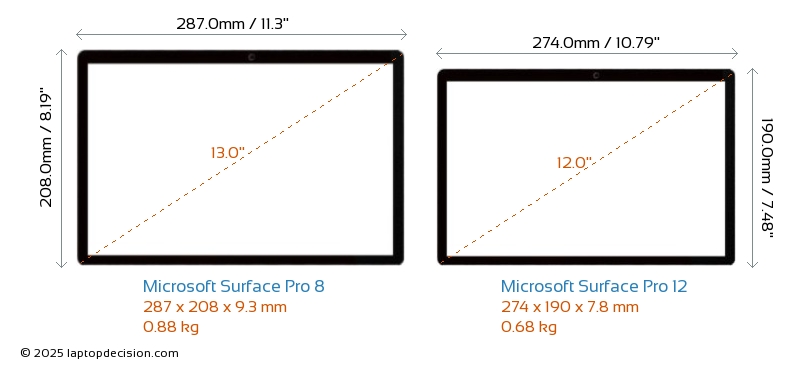 Audio JackSurface Pro 8 is equipped with a 3.5mm Audio Jack, allowing seamless connection to headphones and speakers. Surface Pro 12 does not have a 3.5mm Audio Jack.