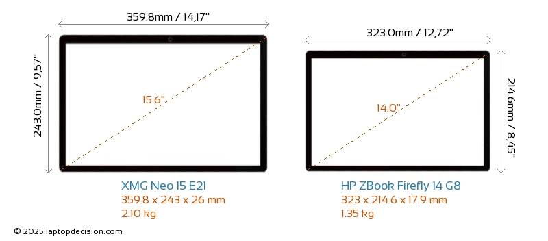 HDMIBoth Neo 15 E21 and ZBook Firefly 14 G8 feature an HDMI port. Neo 15 E21 offers 1x HDMI 2.1, while ZBook Firefly 14 G8 offers 1x HDMI 1.4.
