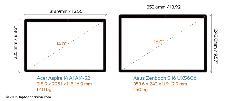 SD Card Reader Zenbook S 16 UX5606 is equipped with an SD Card Reader for easy access to memory cards. Aspire 14 AI A14-52 does not have an SD Card Reader.