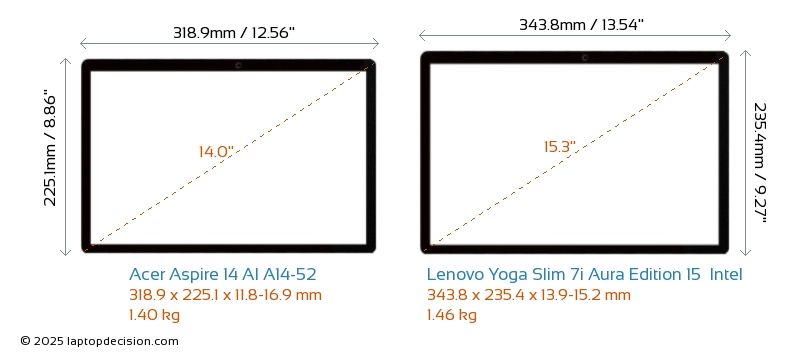 ThunderboltBoth Aspire 14 AI A14-52 and Yoga Slim 7i Aura Edition 15 Intel are equipped with Thunderbolt 4 ports.