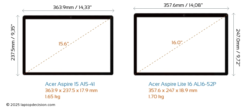 SD Card Reader Aspire Lite 16 AL16-52P is equipped with an SD Card Reader for easy access to memory cards. Aspire 15 A15-41 does not have an SD Card Reader.